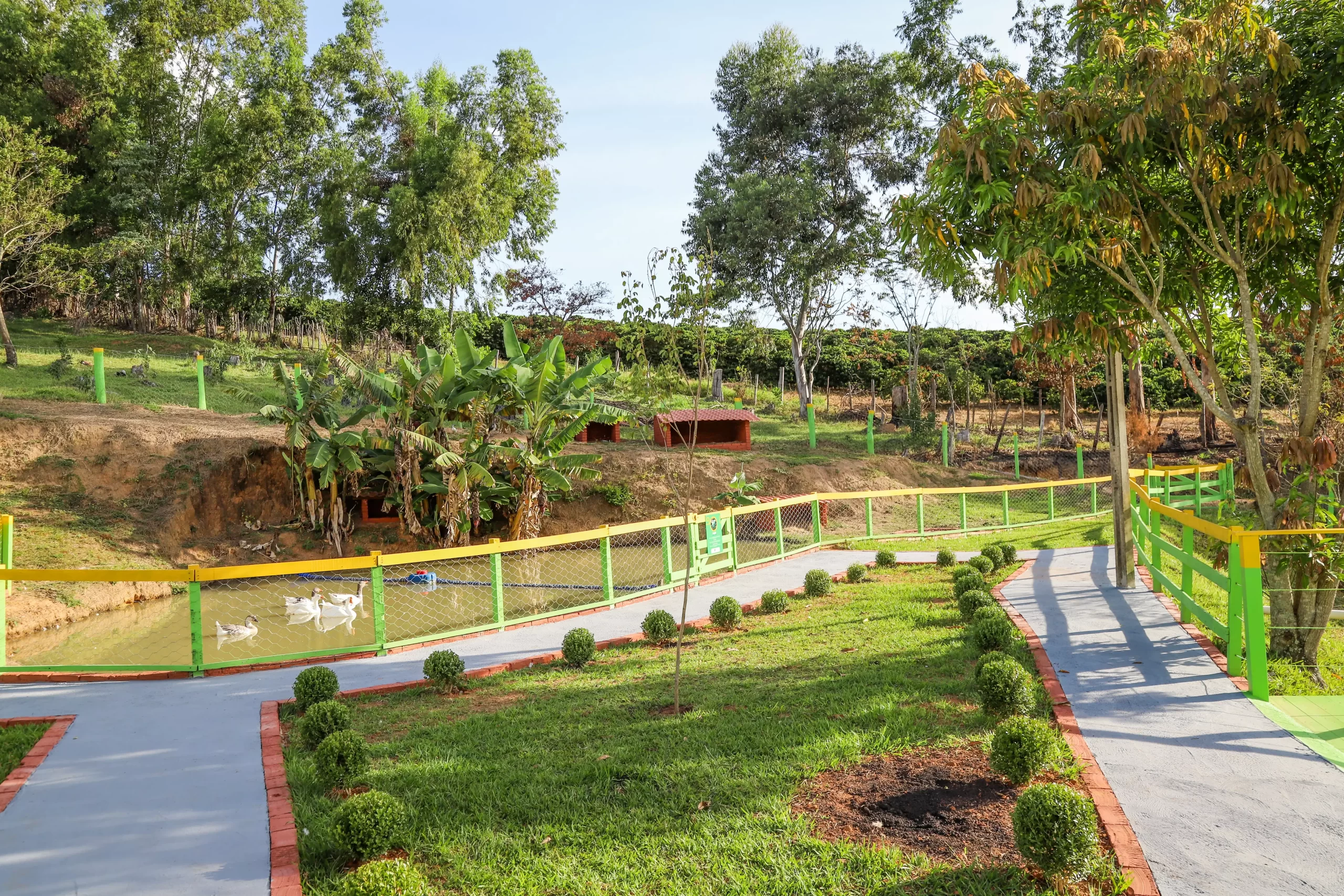 Nossa fazenda foi desenvolvida como um instrumento divertido e, acima de tudo, educativo. Seu planejamento foi 100% focado nos dispositivos da BNCC (Base Nacional Comum Curricular), especialmente em seu caderno de Meio Ambiente. Vivem em nossa fazenda: mini bodes, mini vacas, mini pigs, pôneis, cavalos, coelhos, lebres, ovelhas, avestruz, arara além galináceos e peixes de várias espécies. Os habitantes de Animalândia são vacinados e extremamente dóceis. Características indispensáveis para a realização de interações com os estudantes sob a supervisão constante dos tutores. As visitas são divididas em circuitos, que fazem do passeio por Animalândia uma experiência de conhecimento divertida e enriquecedora. A teoria ‘ganha vida’ e essa vida contribui para o desenvolvimento reflexivo e crítico de cada um dos nossos visitantes.